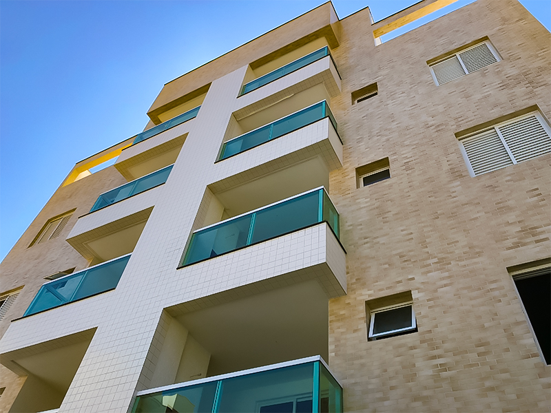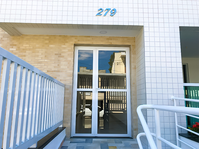 Fachada revestida em pastilha cerâmica, conferindo elegância e durabilidade.